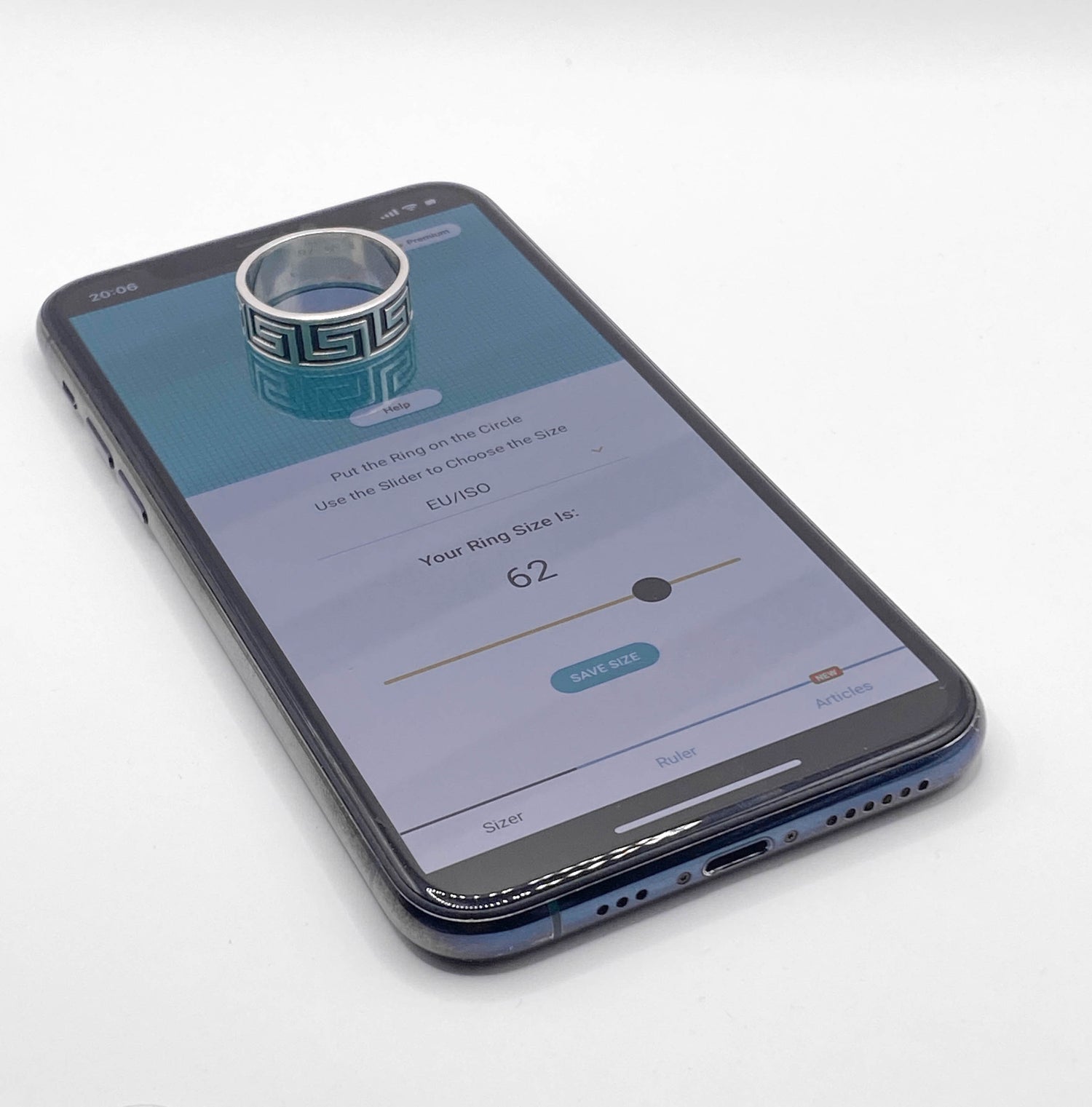 - Ajustez la règle jusqu'a ce que la circonférence de votre bague corresponde parfaitement à celle de l'anneau affiché sur votre téléphone
